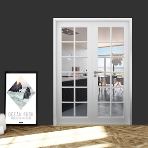 En Bergen dobbelt massiv glasdør fra Safco Doors er med sine 12 glasfelter en flot og smuk dør, som stilmæssigt passer fint ind i både nyere og ældre stilarter.