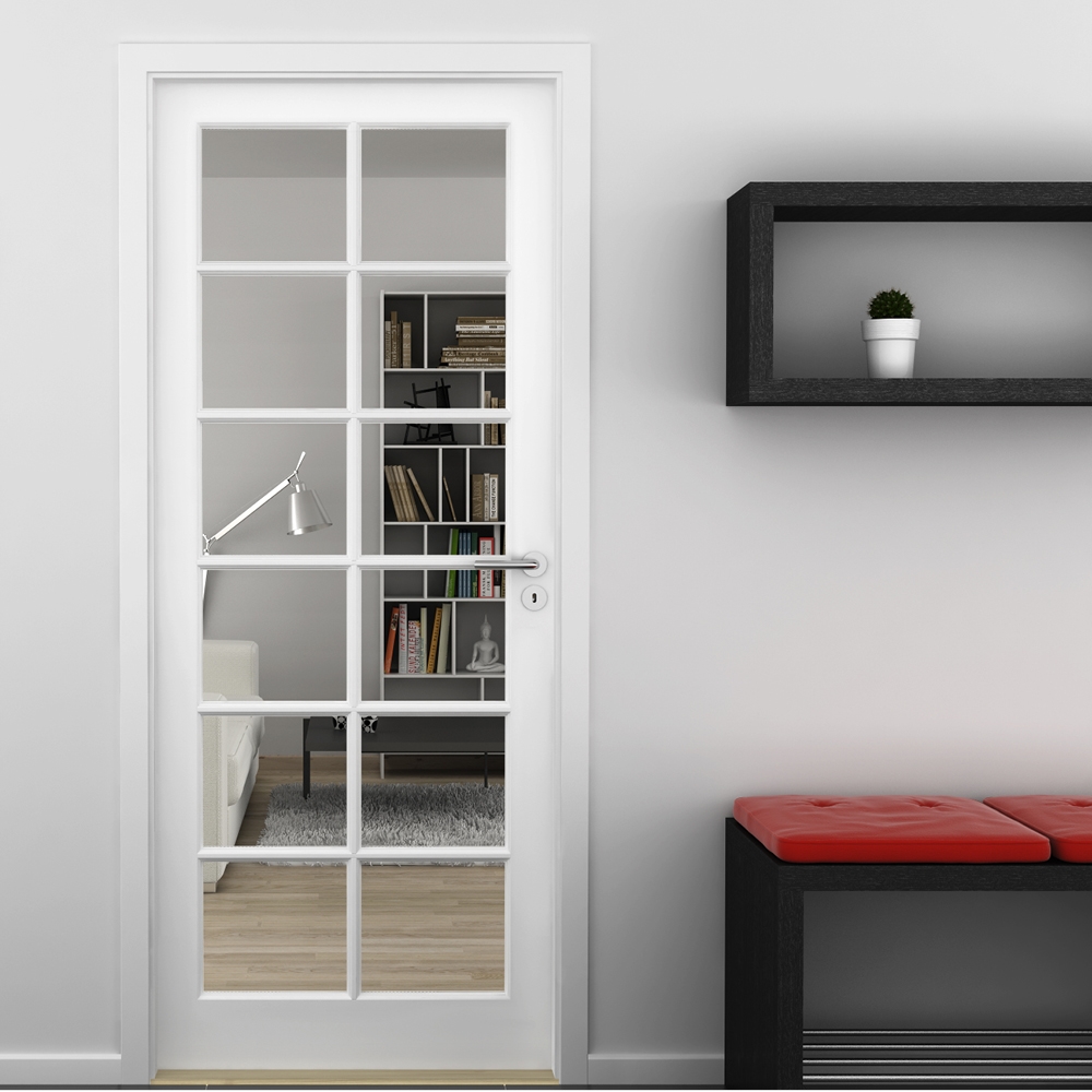 Bergen massiv glasdør fra Safco Doors er med sine 12 glasfelter en yderst populær glasdør. Døren, som designmæssigt er ret neutral, passer godt ind til mange forskellige indretninger og stilarter.