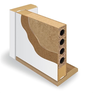 Døren er opbygget med en 40 mm rørspånkerne, 3 justerbar hængsler, bundstykke i egetræ og med en Assa 565 lås, som er forberedt til cylinderlås.