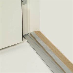 Døren bliver leveret med 3 stk. sikkerhedshængsler og et bundstykke i lakeret eg og beklædt med aluminium.