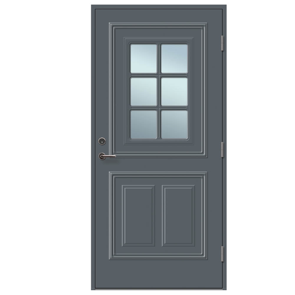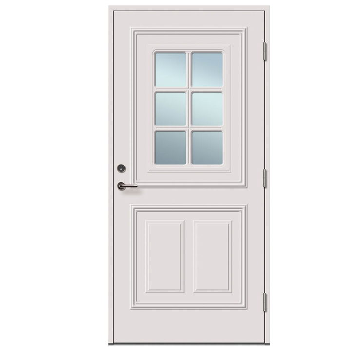 Døren kan købes som enten indadgående eller udadgående og leveres excl greb og cylinder.