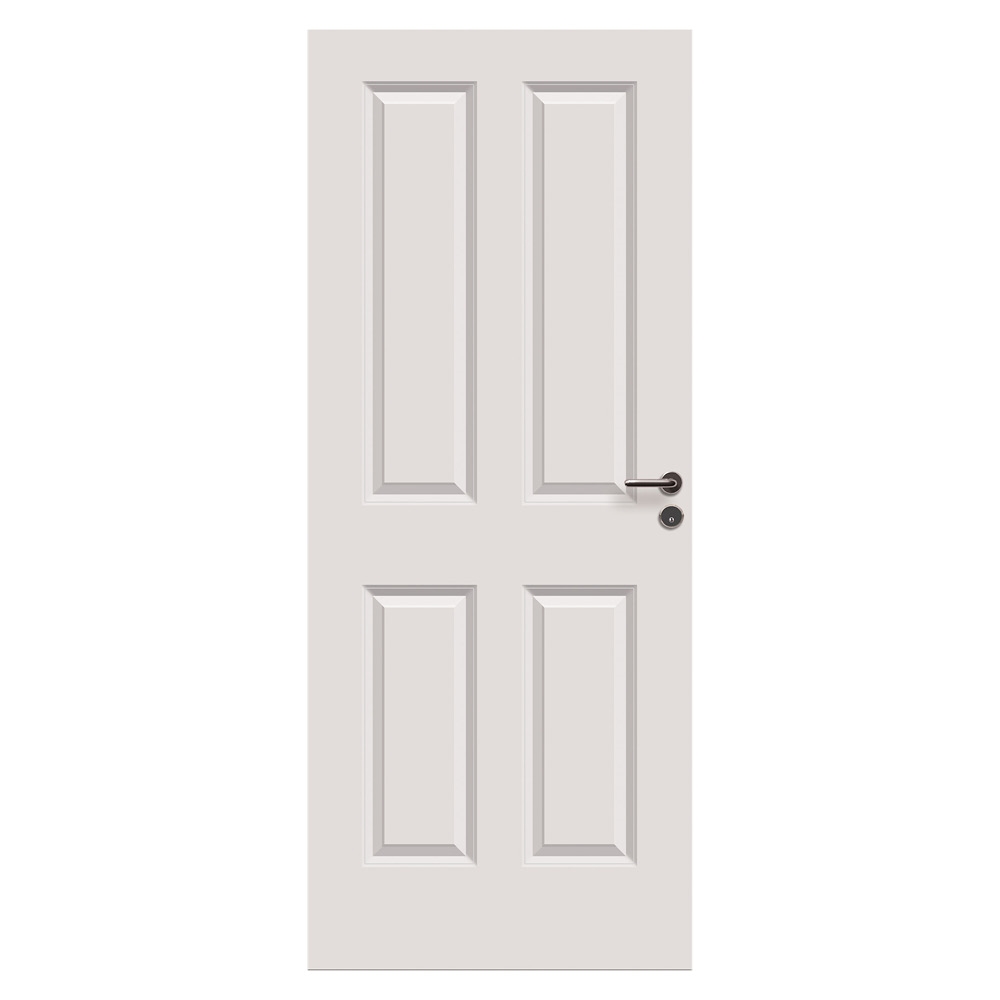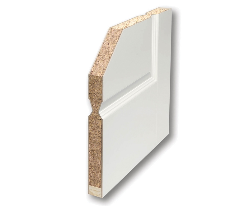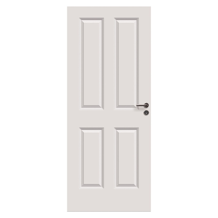 Døren er opbygget med en fyrtræsramme, 3 mm. formpresset fiberplade, og med en kompakt/massiv rørspånkerne.
