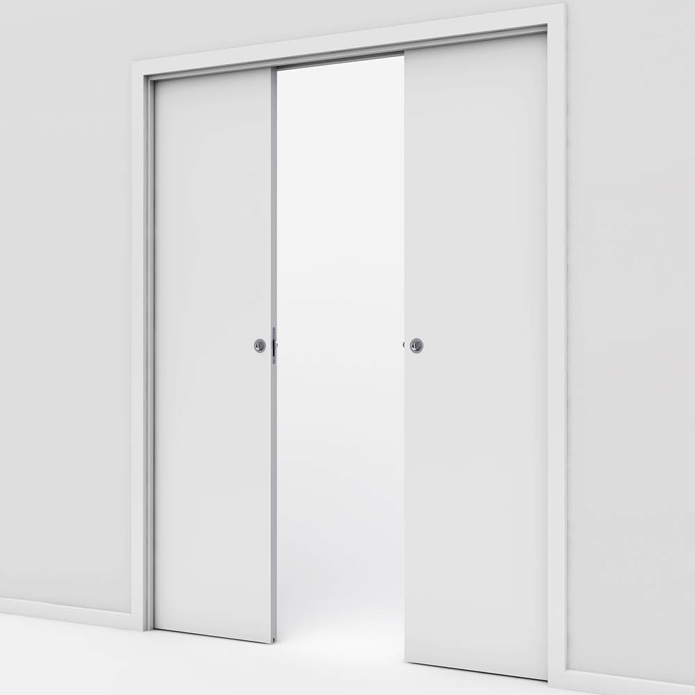 Dobbelt glat kompakt / massiv skydedør med 70/95 indbygningskarm - Safco Doors