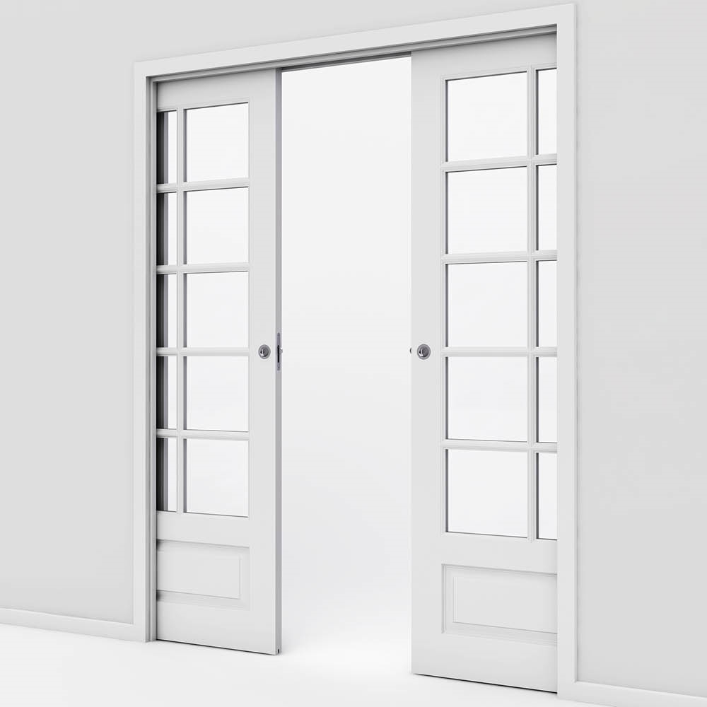 Dobbelt massiv London glas skydedør med 95/120 indbygningskarm - Safco Doors