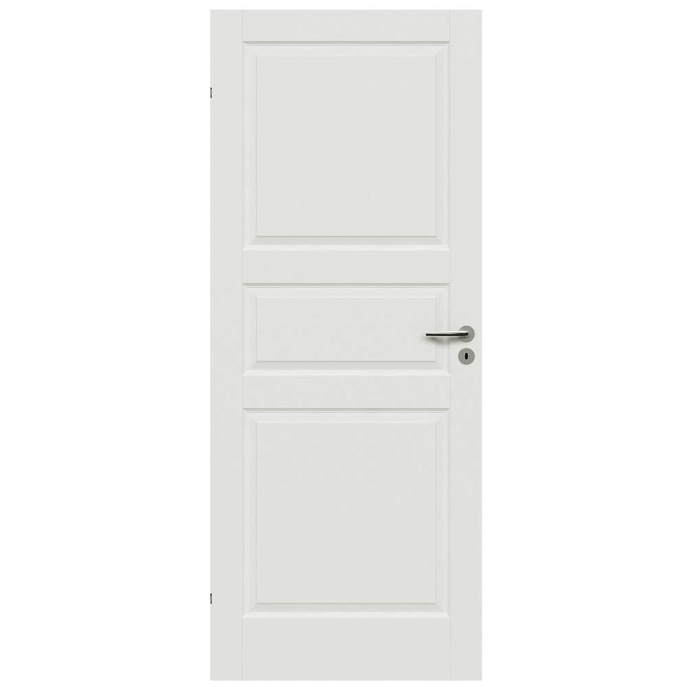 Døren er opbygget med en fyrtræsramme, 3 mm. formpresset fiberplade, og med en kompakt/massiv rørspånkerne.