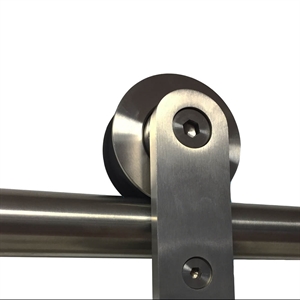 Denne eksklusive skydedørsløsning købes som sæt bestående af en glat kompakt/massiv dør, samt en gedigent rustfri stålskinne. Sættet udtrykker et råt look og fremstår flot og elegant.