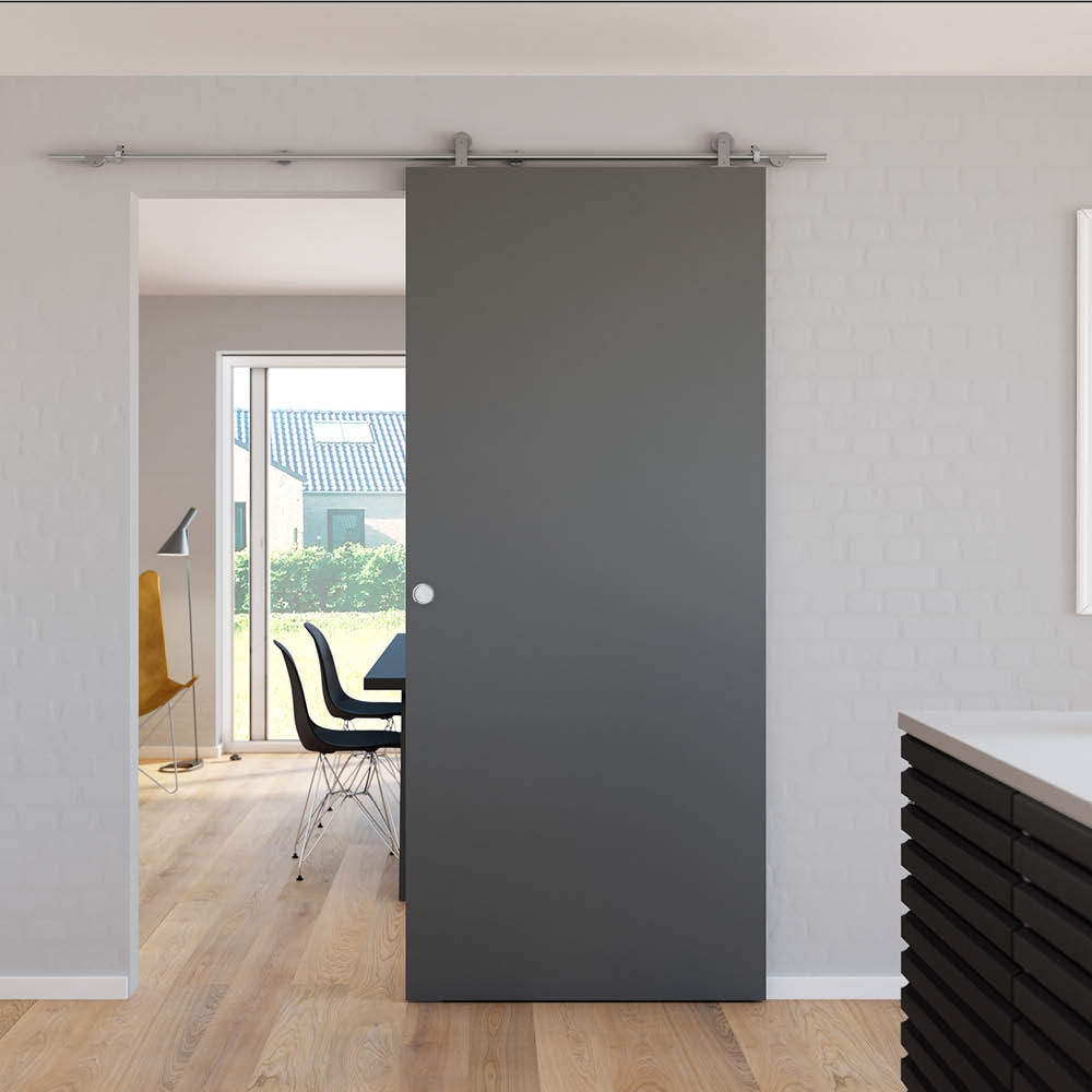 Komplet pakkeløsning inkl. kompakt/massiv dør i farven Antrasit og 2 meter rustfri stålskinne
