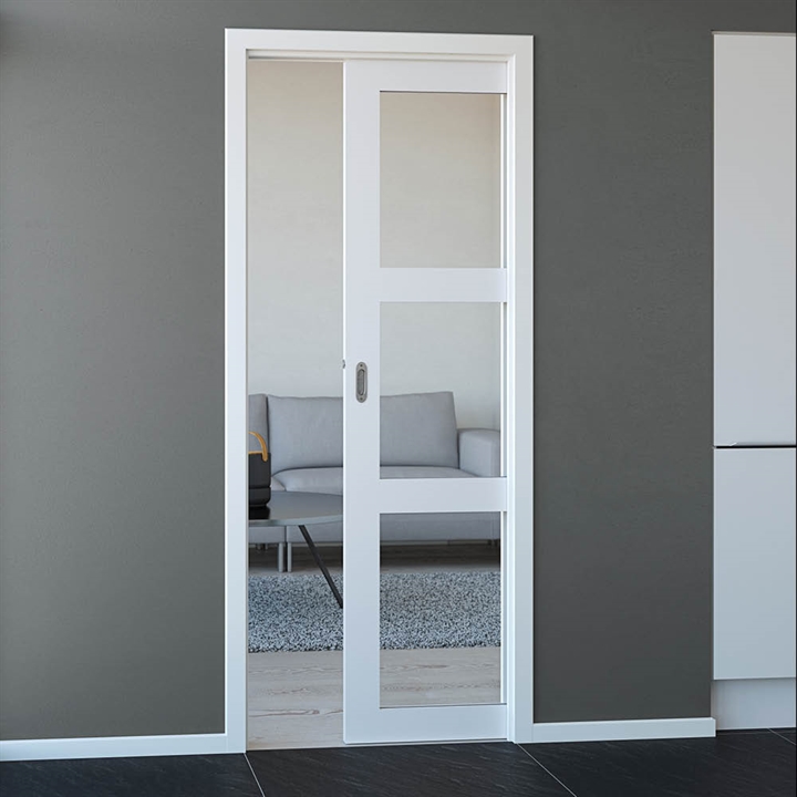 Kvadrat 3 glas skydedør med valgfri design greb - Safco Doors