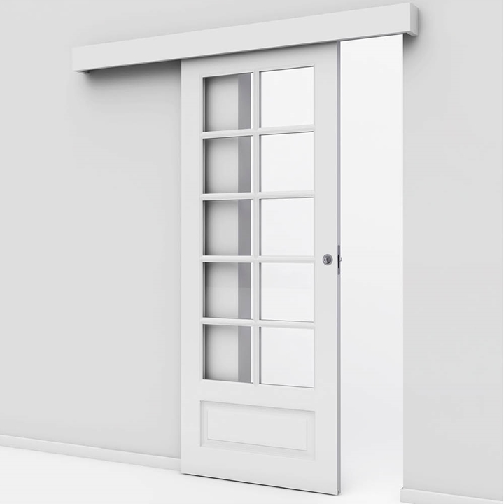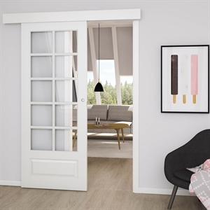 Alternativt kan skydedøren monteres i væggen. Se evt. vores udvalg af indbygnings skydedøre.
