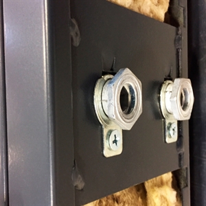 Karm har ilagt isolering og har adjustfix monteringsbolte isat for let montering. Døren er derudover forberedt til dørpumpe, der kan monteres modsat hængsels siden.