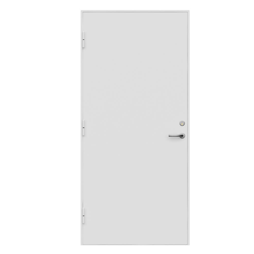 Dør, karm og bundstykke er alle galvaniseret og hvidmalet i RAL 9010